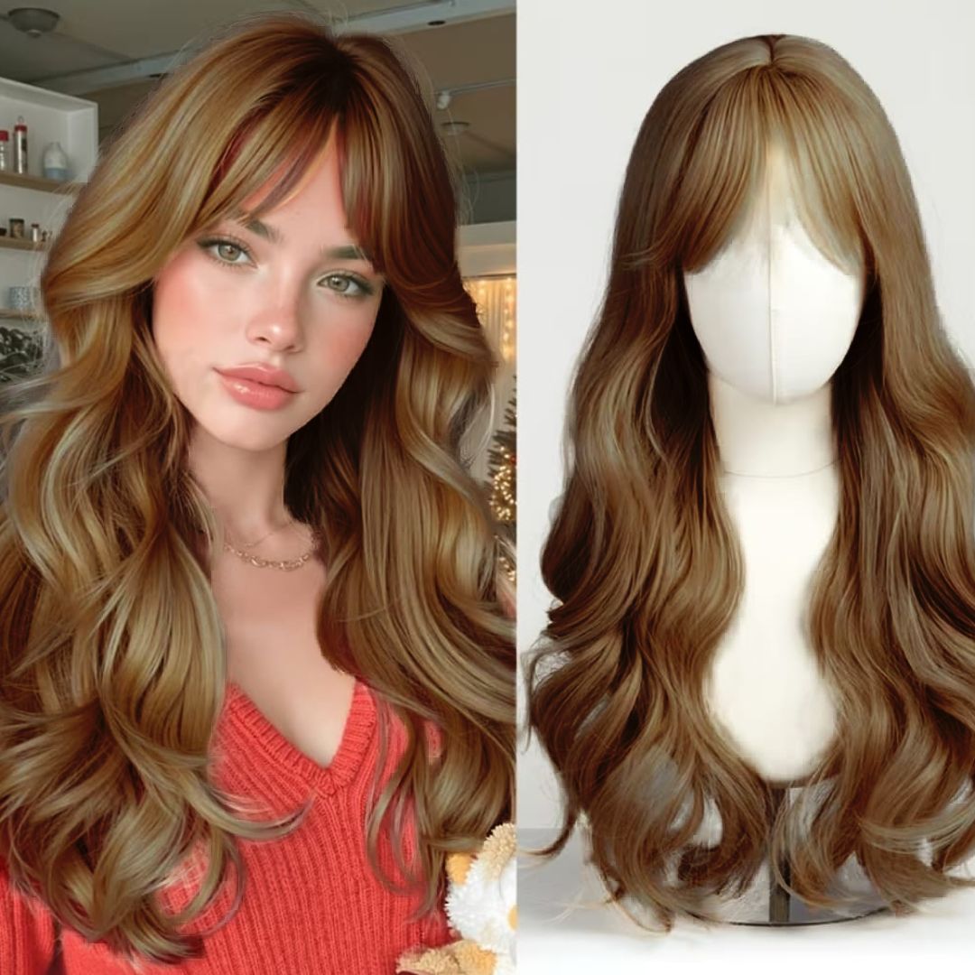 Περούκα γυναικεία με πολύ μακριά κυματιστά μαλλιά με αφέλειες