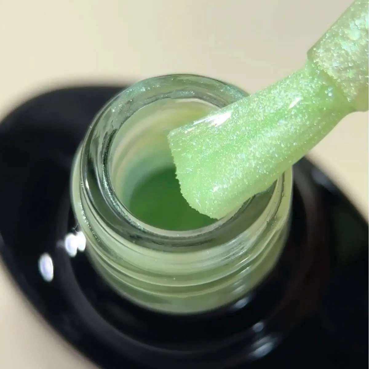 Ένα παστέλ μέντα με μεταξένια περλέ λάμψη. Αγκαλιάζει το νύχι με μια ημιδιαφανή «ομίχλη» χρώματος, καθιστώντας το ιδανικό για δημιουργία εφέ σύννεφου και πολυεπίπεδων σχεδίων.