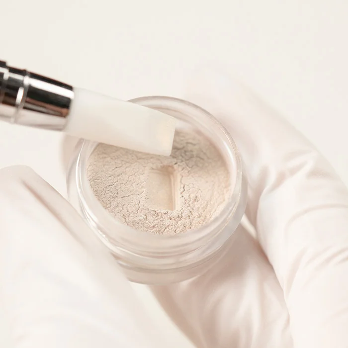 Πρόκειται για μια ιριδίζουσα πούδρα υπέρλεπτης υφής nano, σχεδιασμένη ώστε να προσφέρει απόλυτα λείο φινίρισμα χωρίς ίχνος κόκκου ή glitter σωματιδίων. Το αποτέλεσμα είναι μια απαλή, μαργαριταρένια επιφάνεια που αντανακλά το φως διακριτικά και μεταβάλλει την απόχρωσή της ανάλογα με το base color που έχει εφαρμοστεί από κάτω.