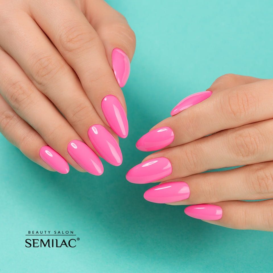 - Εφαρμόστε μία λεπτή στρώση χρώματος πάνω σε πολυμερισμένη Semilac Base και πολυμερίστε σε λάμπα UV/LED σύμφωνα με τους χρόνους πολυμερισμού της.